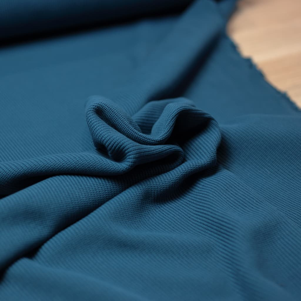 Sélection Coup de Coudre - Tissu Maille de Coton Côtes Fines Couleur Bleu Canard