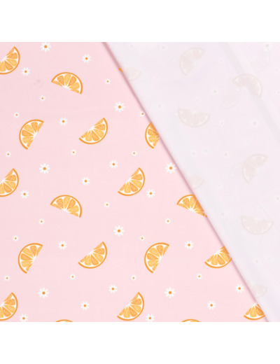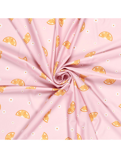 Sélection Coup de Coudre - Tissu Maille Maillot de Bain Oranges Sur le Fond Rose Pale
