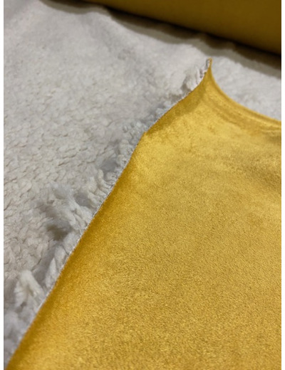 Couleur: recto suédine couleur jaune ocre, verso tissu peau de mouton couleur beige