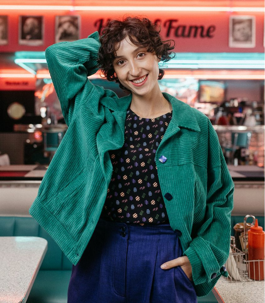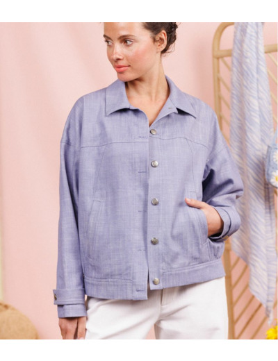 ROPKETTE est le blouson rêvé ! Court et oversize, il est facile à vivre avec ses emmanchures basses et son col façon veste en jean. De jolis détails lui donnent du caractère comme le jeu de découpes, les poches et la bande bas en incrustation.