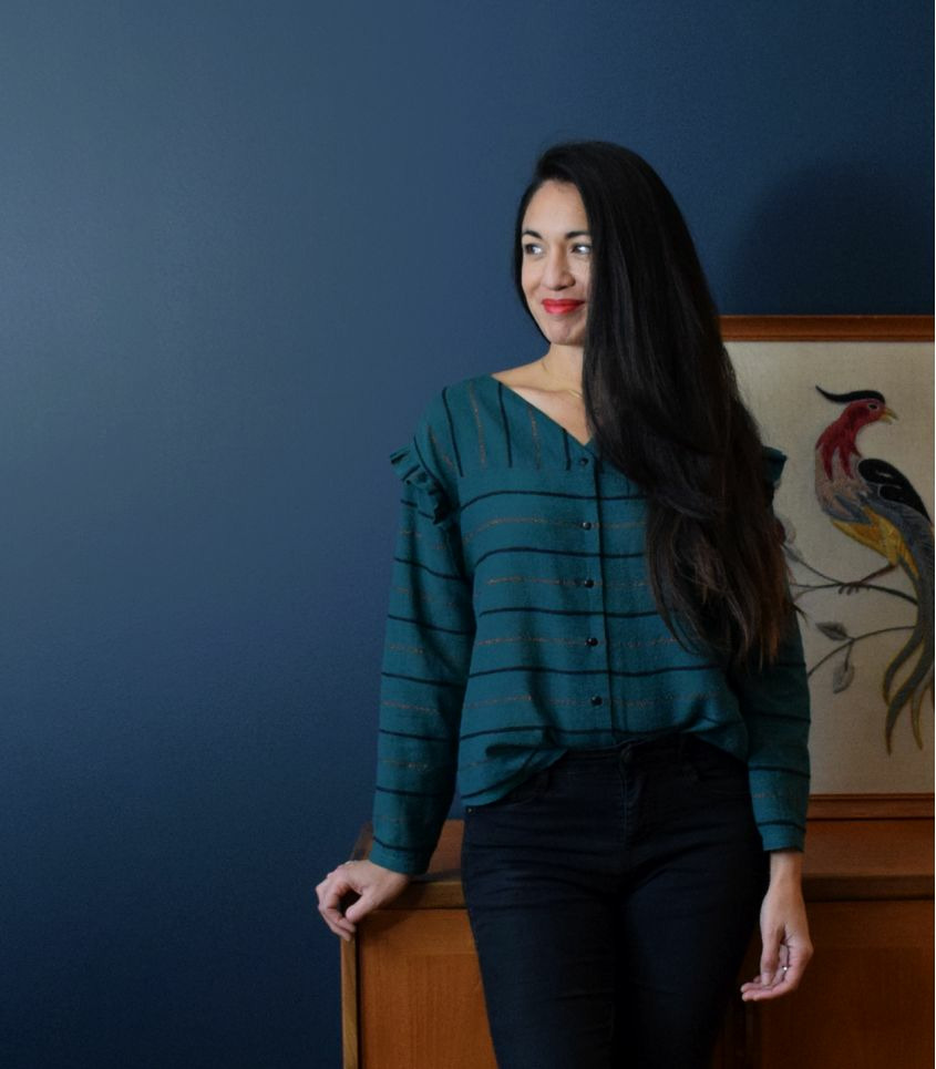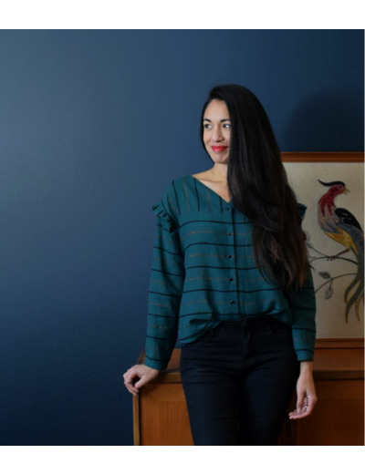 Chemisier avec les empiècements dos et devant et les volants aux emmanchures.