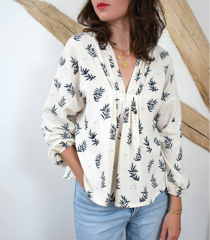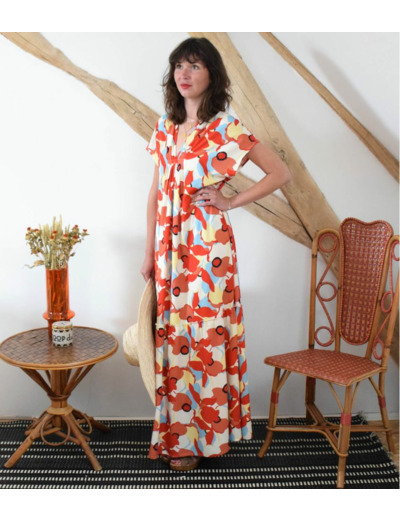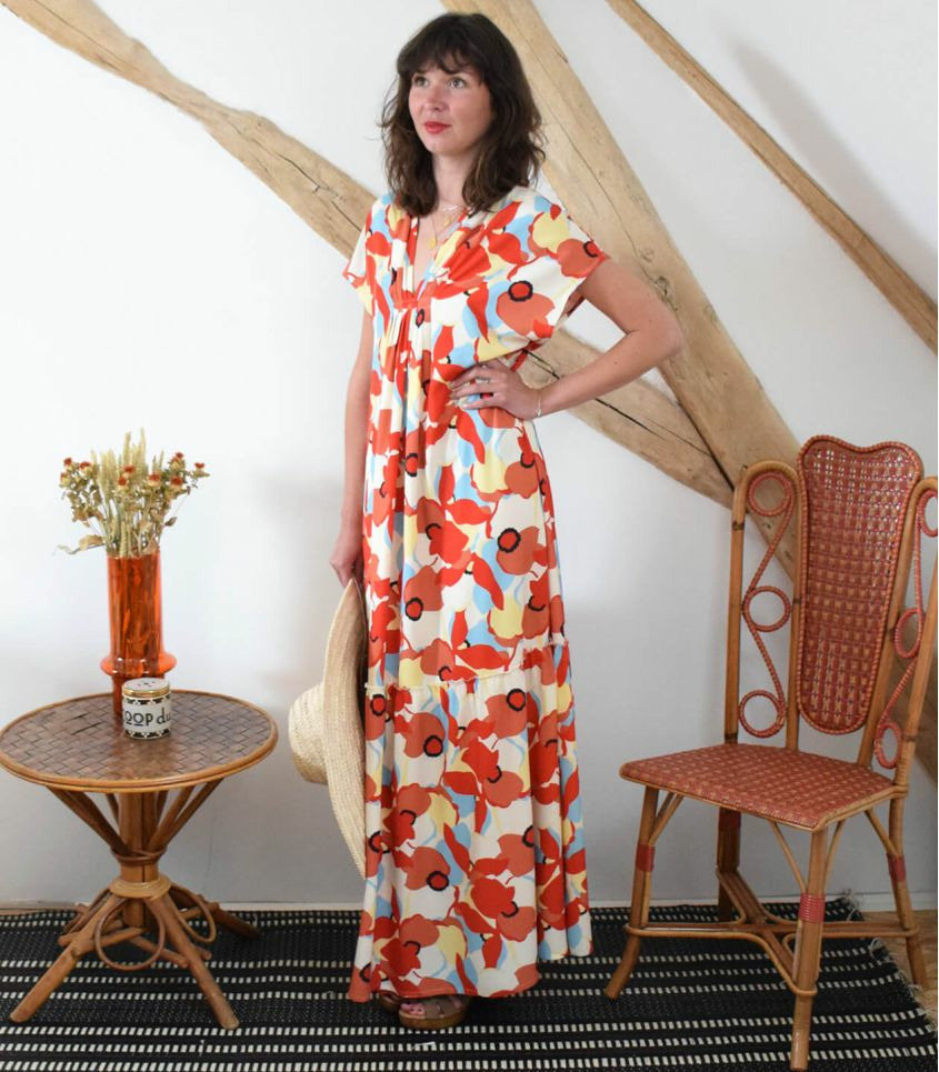 Avec son accumulation de plis qui soulignent son joli décolleté et ses emmanchures basses, Espelette est la tenue bohème idéale ! 3 versions possibles: blouse avec ou sans manches, robe courte ou maxi longue en ajoutant un grand volant.