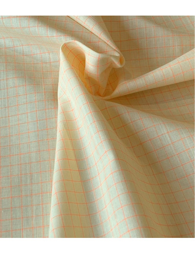 Koy est un batiste de coton jaune clair imprimée d'un carreaux orange fluo de 7 mm de coté.
