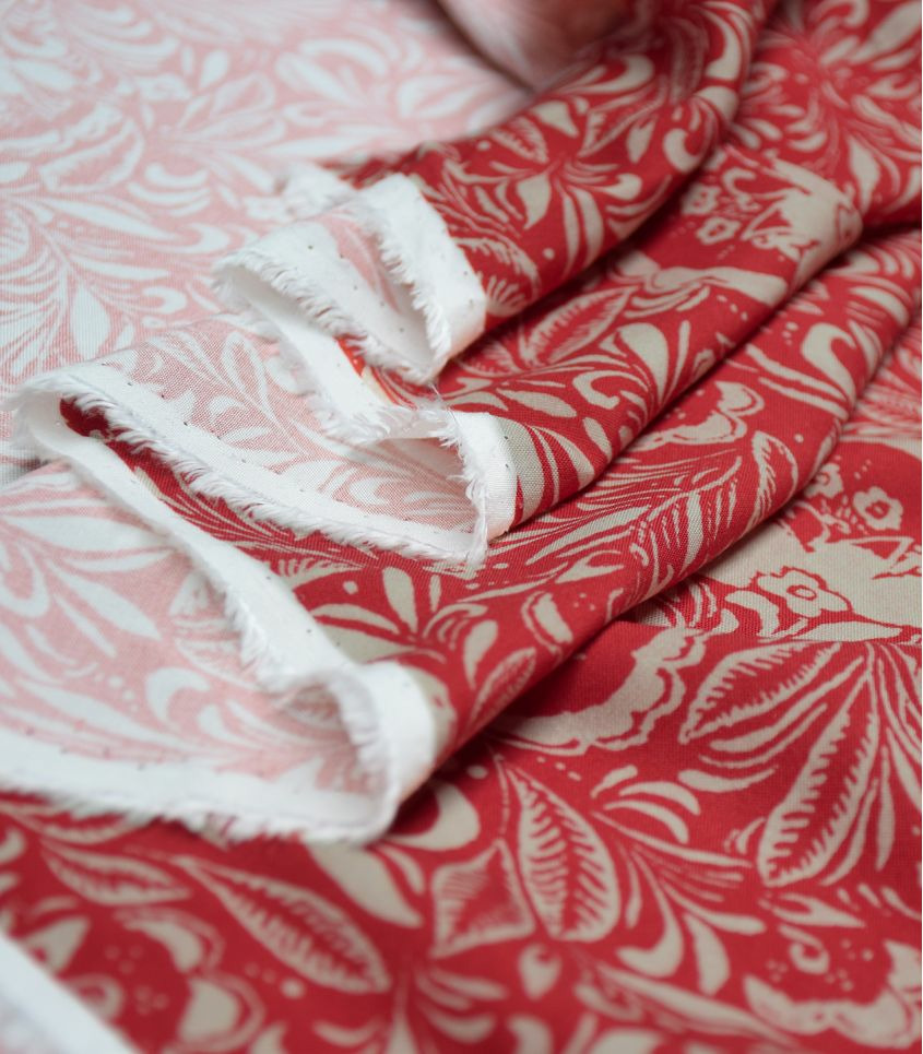 Popeline de viscose fluide et douce, Maarinsky dévoile un motif floral rouge brique relevé de tracés beiges délicats, comme une estampe ancienne. Inspiré des jardins sauvages, ce tissu est une ode à la liberté créative : robes légères, blouses raffinées, jupes amples ou chemisiers subtils. Facile à coudre et agréable à porter, il accompagnera vos créations d’automne avec élégance et caractère.
