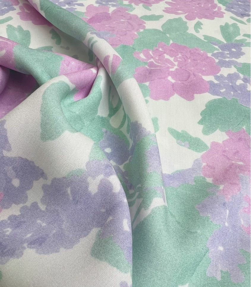 Viscose imprimée Pivoine, des bouquets de pivoines bleues céleste sur fond écru.