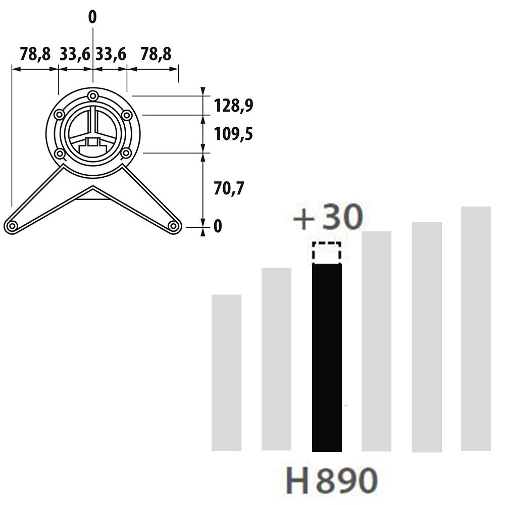 Réhausse par verrin (en mm)