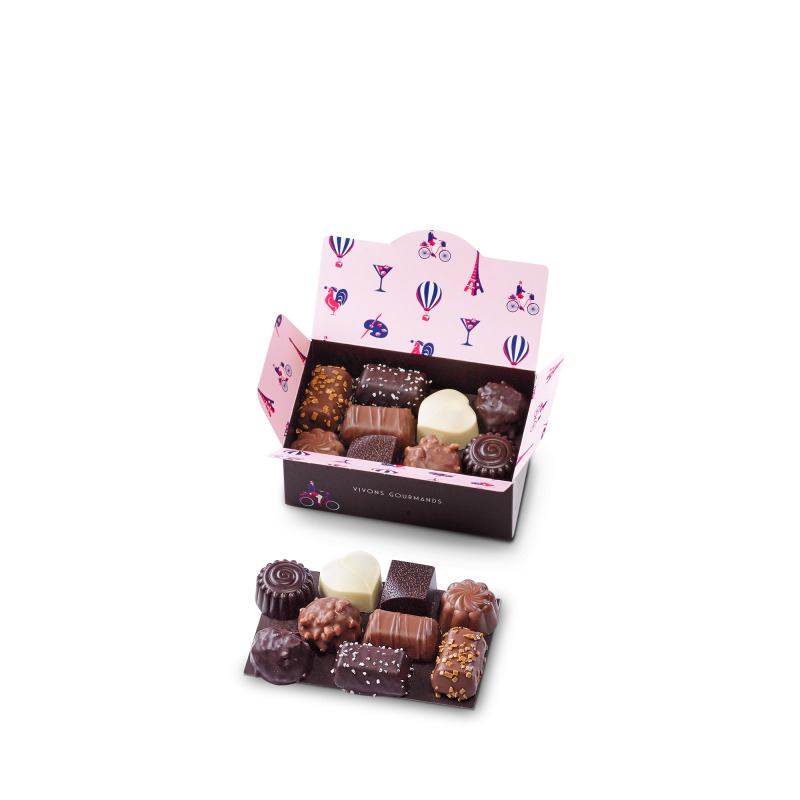 Retrouvez avec cet assortiment de chocolats au lait, noirs et blancs une véritable palette de saveurs : des ganaches onctueuses, des pralinés torréfiés à cœur, pâtes d'amandes, nougatines et bien d'autres à découvrir. Créés et fabriqués en France à partir des ingrédients les plus fins, les chocolats de Neuville raviront tous les palais avec des recettes classiques comme des plus originales. Toute la force et la douceur d’un chocolat de qualité pour succomber à la tentation et partager un agréable moment chocolaté. Un joli cadeau chocolaté pour soi ou pour ceux qu’on aime. Créez l'effet de surprise en choisissant la livraison de chocolats à domicile. Vos proches recevront un ballotin de chocolats accompagné d'une carte message personnalisé.