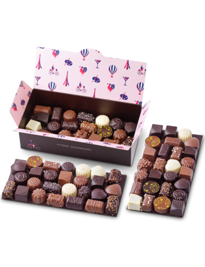 Retrouvez avec cet assortiment de chocolats au lait, noirs et blancs une véritable palette de saveurs : des ganaches onctueuses, des pralinés torréfiés à cœur, pâtes d'amandes, nougatines et bien d'autres à découvrir. Créés et fabriqués en France à partir des ingrédients les plus fins, les chocolats de Neuville raviront tous les palais avec des recettes classiques comme des plus originales. Toute la force et la douceur d’un chocolat de qualité pour succomber à la tentation et partager un agréable moment chocolaté. Un joli cadeau chocolaté pour soi ou pour ceux qu’on aime. Créez l'effet de surprise en choisissant la livraison de chocolats à domicile. Vos proches recevront un ballotin de chocolats accompagné d'une carte message personnalisé.