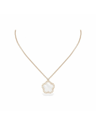 Collier Cesare Pompanon Fiore di Mamma entourage diamants petit modèle en or rose et nacre blanche FCO13722NAR