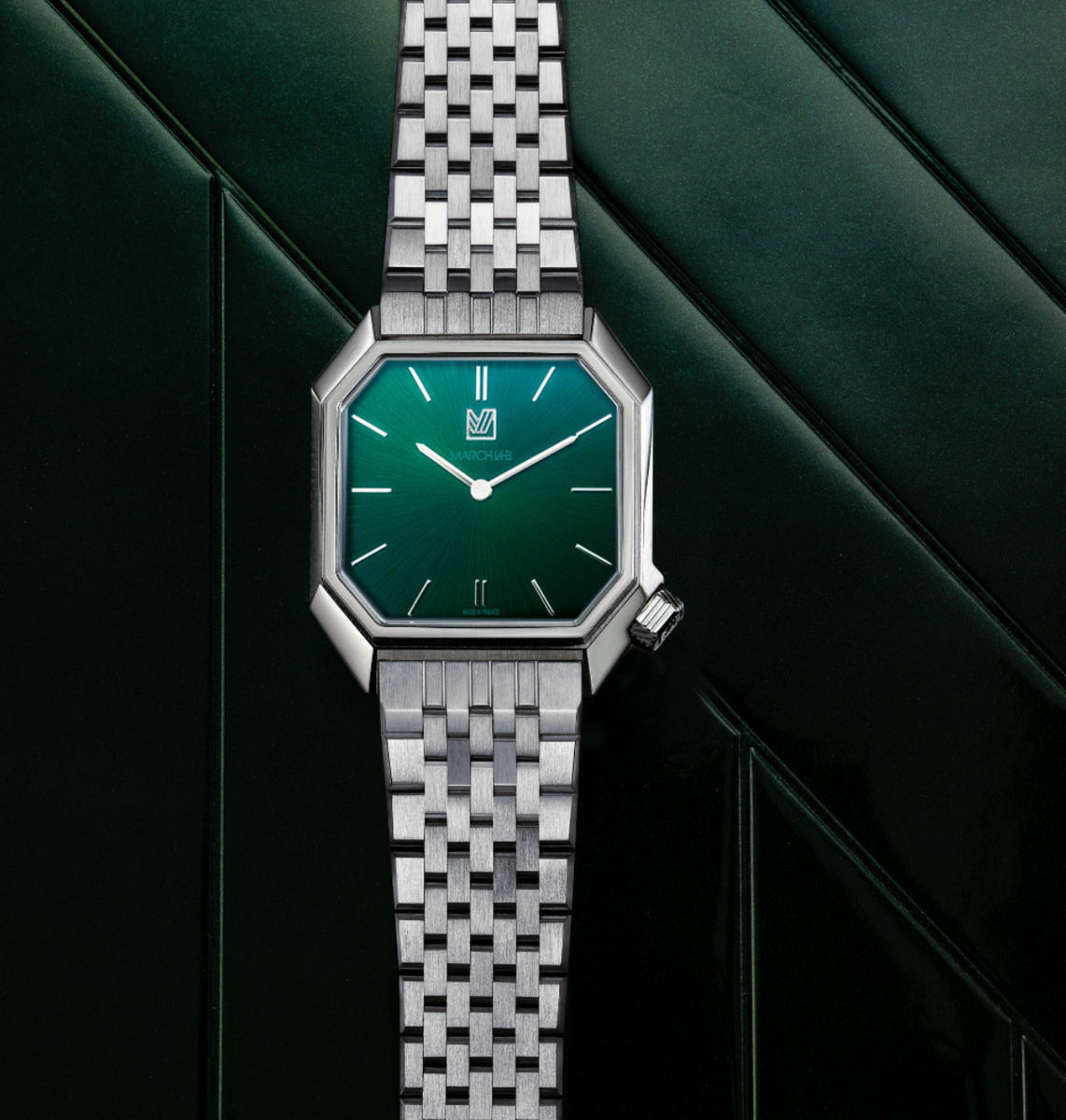 Montre March LA.B MANSART ELECTRIQUE 34 MM - FOREST - Acier 7 Maillons Plat MANSARTEFTS710