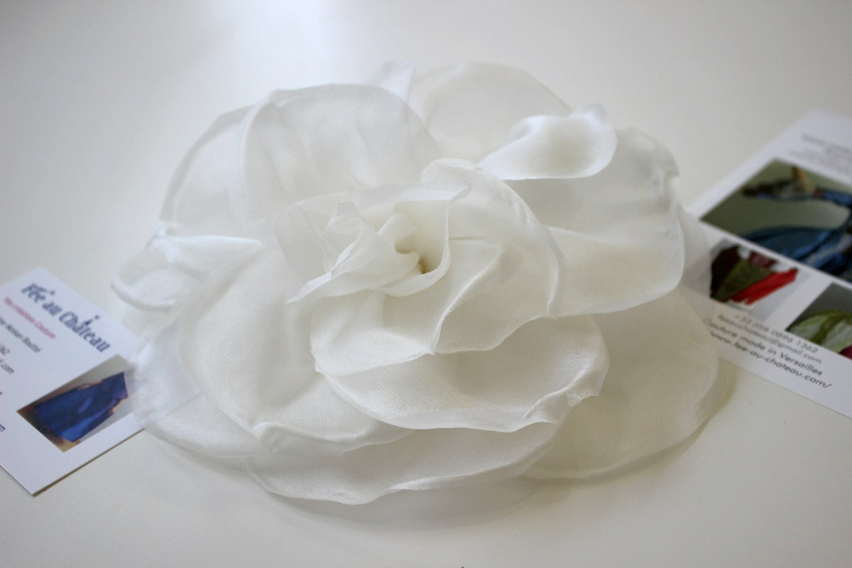 Rose Blanche En Organza De Soie Satin Sur Broche