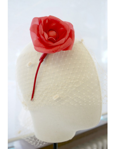 Serre-Tête Fin Recouvert De Satin Rouge, Surmonté D'Un Camélia 100 % Soie De Couleur Rouge Écarlate. La Fleur Est Façonnée À La Main.
