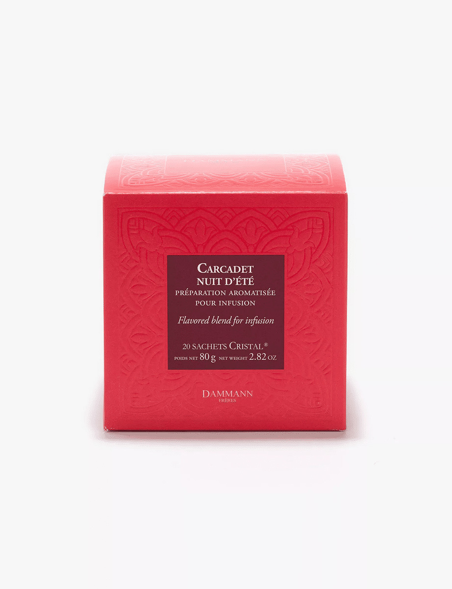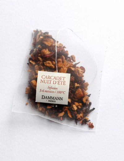 Mélange de fleurs d'hibiscus, de morceaux de pomme, d'écorces de cynorrhodon, arômes framboise, fraise et crème. La texture, proche de la soie, permet d'obtenir une infusion identique à celle que procurent des infusions en vrac de qualité égale.