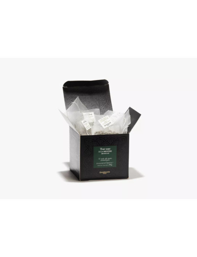 Inspiré de l’incontournable thé à la menthe marocain, notre thé vert à la menthe aromatisé allie en belles proportions, le thé vert Gunpowder à deux variétés de feuilles de menthe afin de créer une parfaite synergie. La communion entre la délicate menthe douce et la subtile fraîcheur de la menthe poivrée, toutes deux portées par le thé, vous offrira une infusion puissante et rafraîchissante. Selon la tradition, un thé à boire très chaud et sucré.