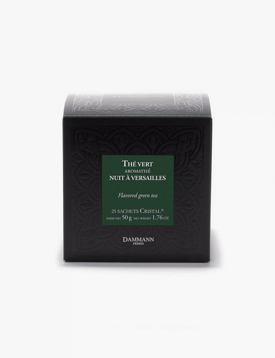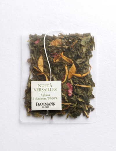 Bergamote, kiwi, pêche jaune, fleur d'oranger, fleur de violette, toutes ces senteurs et saveurs cultivées avec soin et gourmandise depuis le XVIIe siècle dans les jardins de Versailles, sont associées à un thé vert pour nous offrir un mélange hautement parfumé où, notes végétales, fleuries et fruitées se mêlent dans une royale infusion.