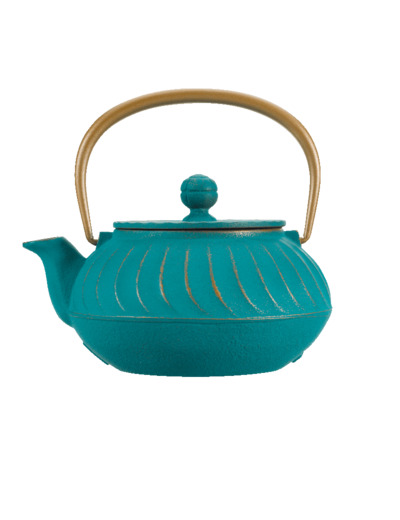Théière fonte 0,65L Nami turquoise dorée Anse dorée