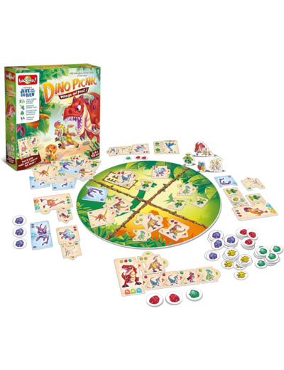 Dino Picnic est un jeu de draft compétitif dans lequel il faut assembler des chaînes alimentaires, faire manger les dinosaures et autres êtres vivants et leur permettre de procréer. Le vainqueur étant le joueur avec le plus de bébés animaux.