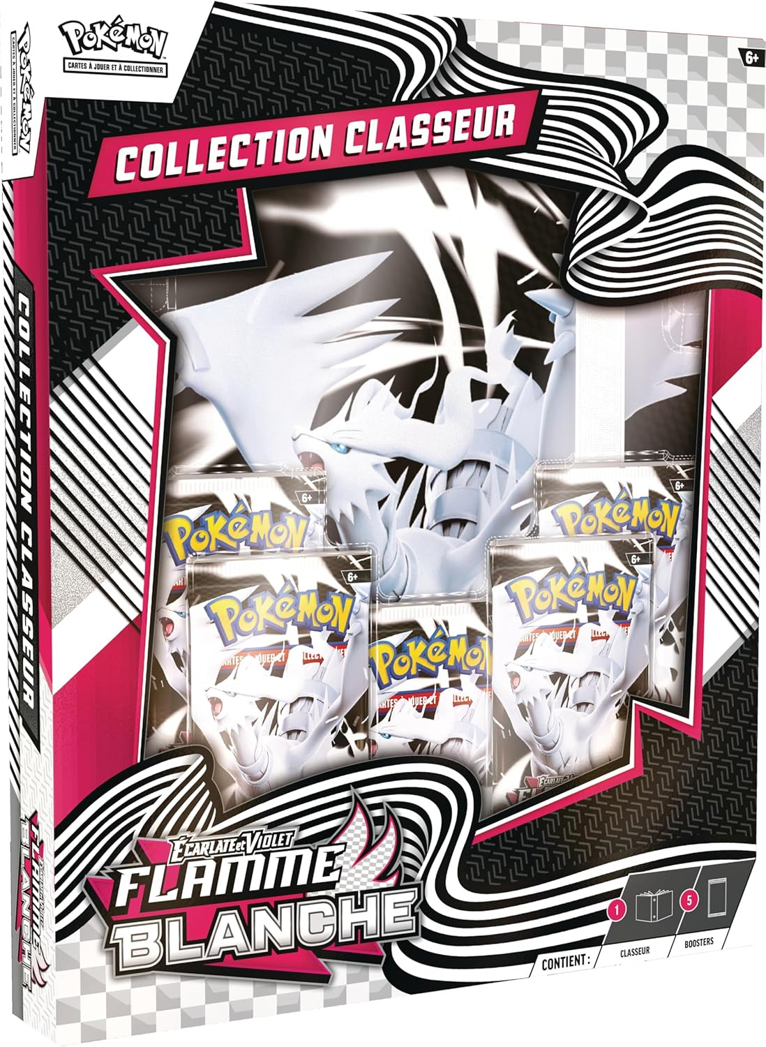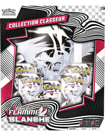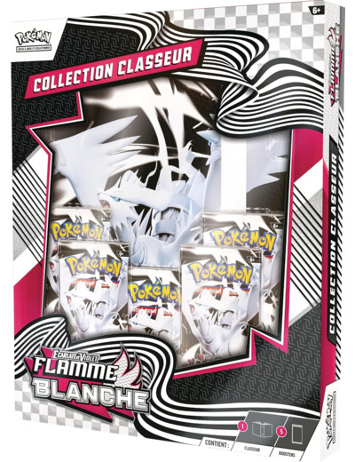 Tout comme un Pokédex, un classeur permet de suivre les progrès de votre collection de Pokémon. Avec ce classeur à 9 pochettes, vous pourrez ranger un large nombre de vos cartes préférées du JCC Pokémon. Et pour bien démarrer, cette collection comprend également 5 boosters de l’extension Écarlate et Violet – Flamme Blanche.