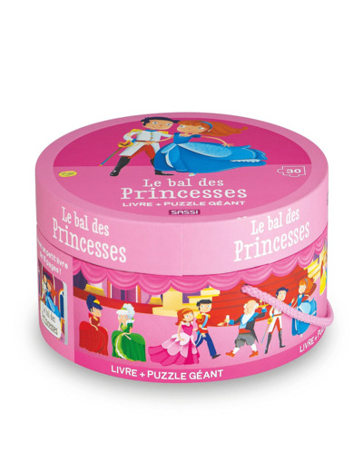 Un coffret qui contient un puzzle de 30 pièces et un livre sur le thème du bal des princesses !