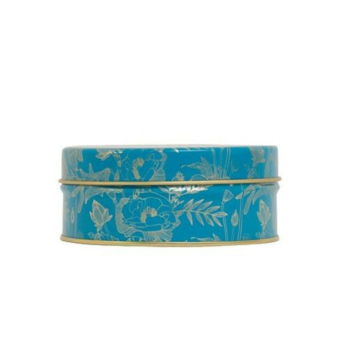 Boite vide en métal hermétique, bleue aux motifs la Route du Thé. Pratique pour une parfaite conservation des feuilles de thé.
