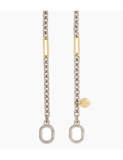 Bandoulière chaine finition argent et or avec bijouterie signature. Longueur 110cm. Sac non vendu avec la bandoulière.