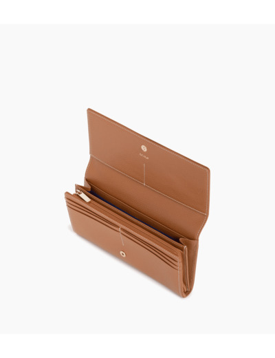 Compagnon à rabat en cuir grainé avec fermeture à pression et marquage Le Tanneur. Sécurité anti-RFID.