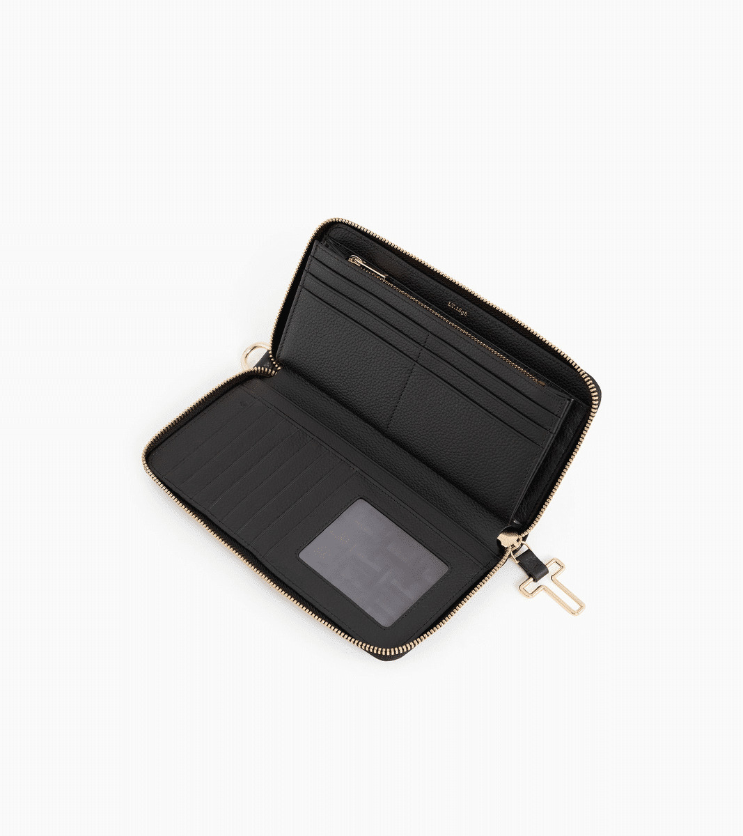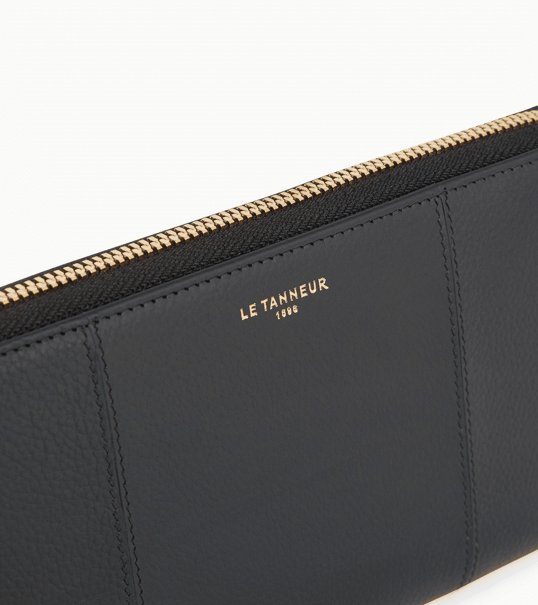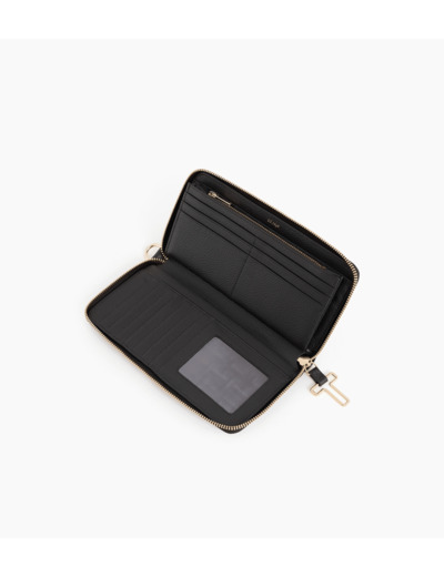 Compagnon zippé en cuir signature avec dragonne amovible. Zip, marquage Le Tanneur et charms T signature finition doré clair. Sécurité anti-RFID.