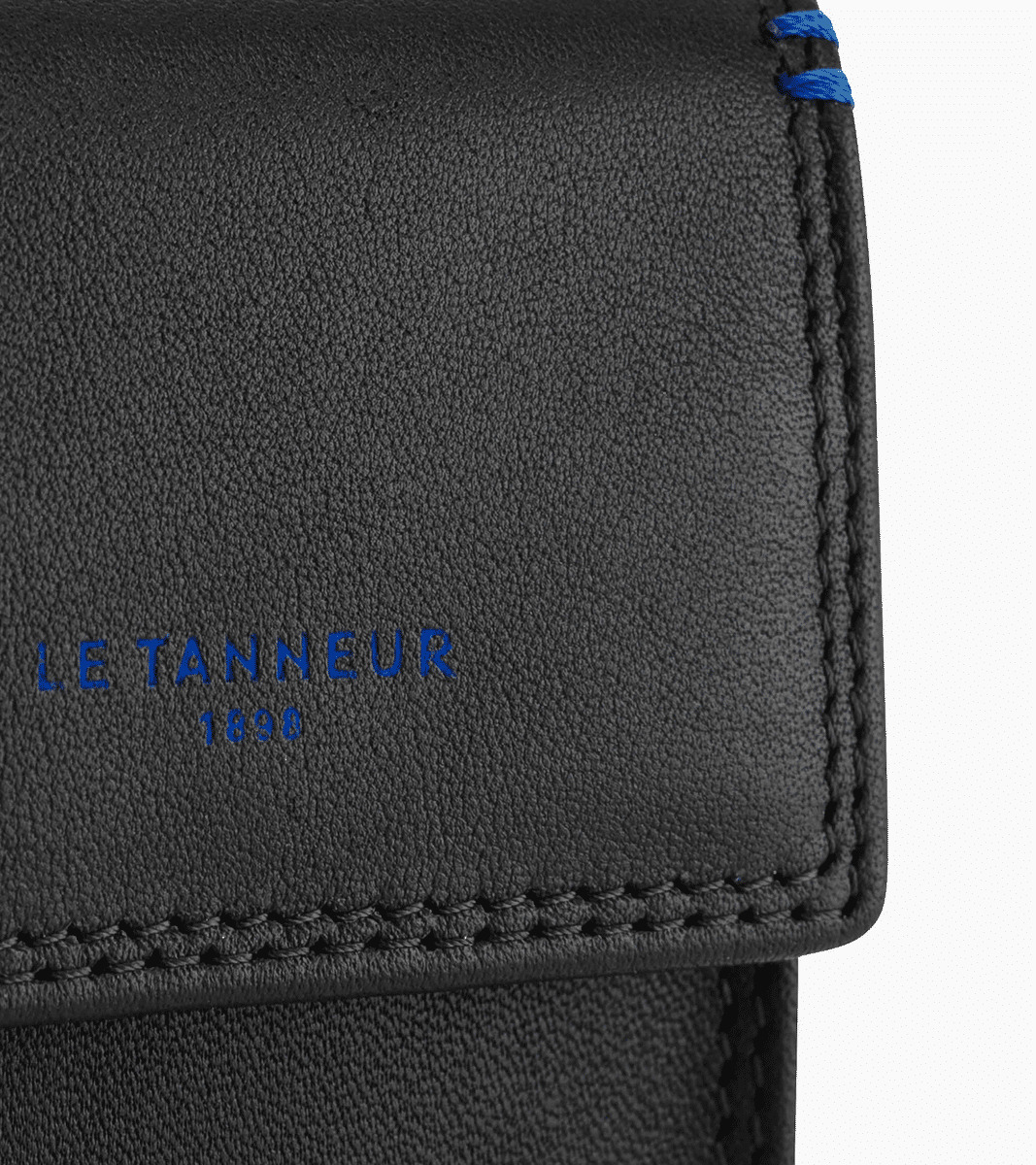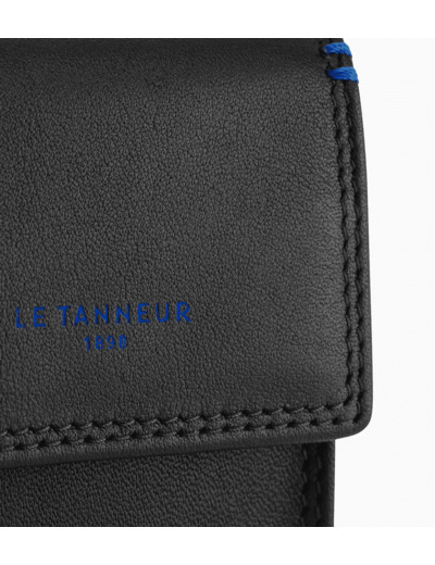 Étui clés à rabat avec piqûres contrastées. Marqué Le Tanneur.