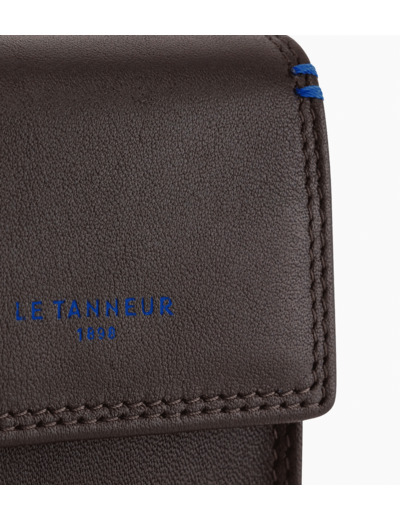 Étui clés à rabat avec piqûres contrastées. Marqué Le Tanneur.