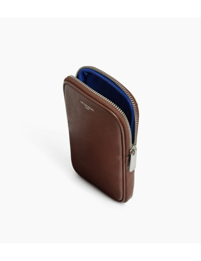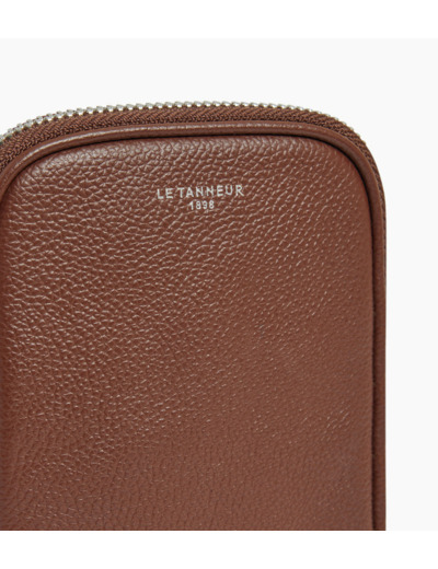 Étui téléphone zippé avec marquage Le Tanneur et zip finition argent. Porté épaule ou croisé grâce à sa bandoulière ajustable. Sécurité antiRFID.