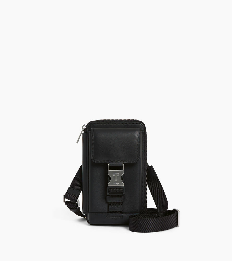 Étui téléphone zippé avec rangements et marquage Le Tanneur embossé ton sur ton, fermoir signature et zip finition argent brossé. Porté épaule ou croisé grâce à sa bandoulière ajustable. Sécurité anti-RFID.