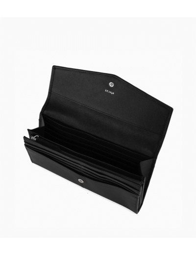 4 poches plates, 1 soufflet, 1 poche zippée monnaie et 12 compartiments cartes. 1 poche plate arrière.