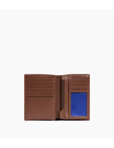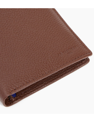 Portefeuille vertical moyen modèle zippé deux volets avec marquage Le Tanneur ton sur ton et piqûres contrastées.