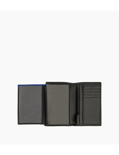2 poches plates, 2 poches ID, 1 poche monnaie zippée, 1 poche billets et 11 compartiments cartes.