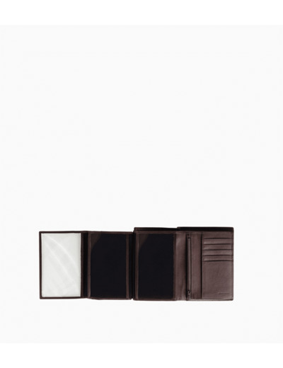 4 poches plates, 3 poches ID, 1 poche monnaie zippée, 2 poches billets et 10 compartiments cartes.