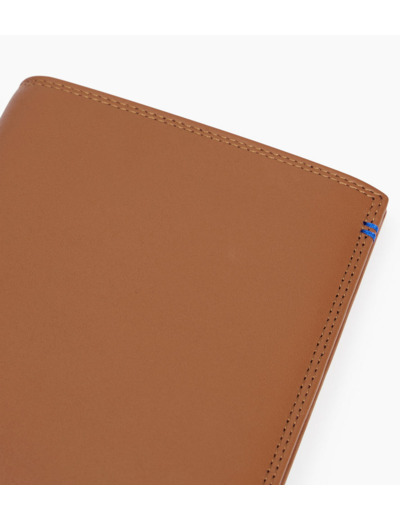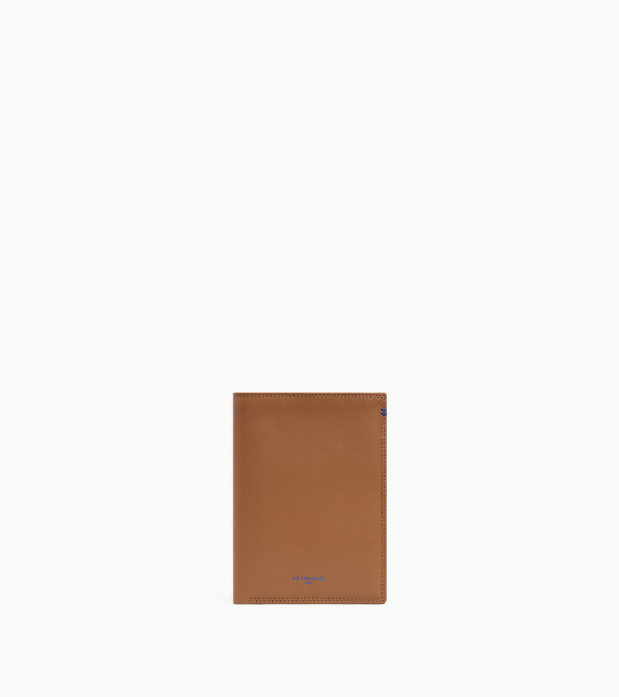 Grand portefeuille vertical deux volets avec marquage Le Tanneur, fermoir pression et poche monnaie zippés finition argent. Intérieur et points bleu signature. Sécurité anti-RFID.