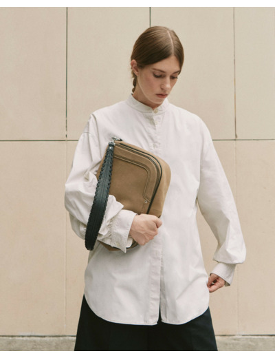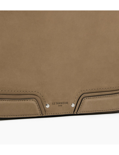 Grand sac bandoulière en cuir lisse et nubuck avec marquage Le Tanneur et doublure 100% coton. Porté main, croisé ou épaule grâce à sa bandoulière ajustable et sa poignée amovible ajustée au corps du sac.