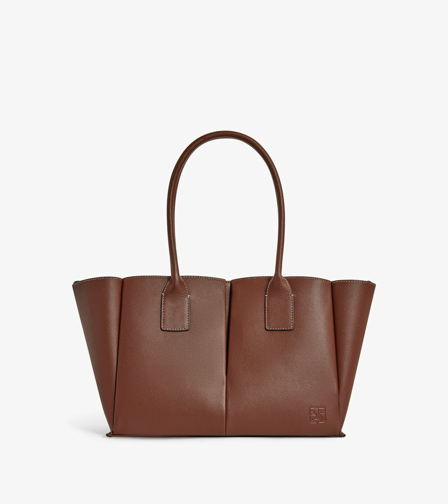 Grand sac cabas avec pochette amovible, miroir de courtoisie et marquage Le Tanneur ton sur ton. Doublure suède en microfibre. Porté main ou épaule.