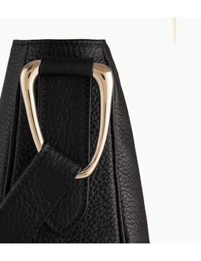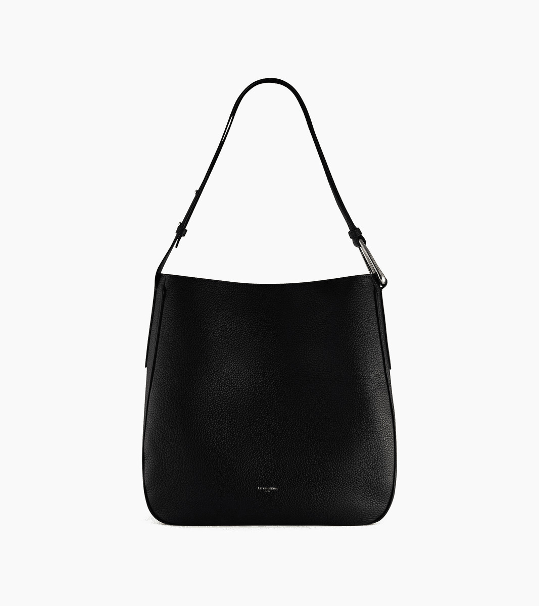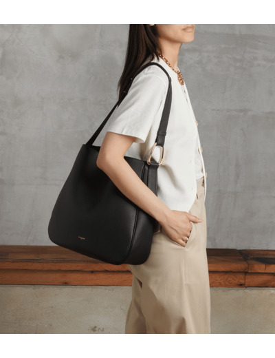 Sac hobo en cuir grainé. Fermeture aimantée. Bandoulière ajustable avec bouton de col et pièce métallique asymétrique. Se porte croisé ou à l'épaule. Edition limitée numérotée. Peut contenir un ordinateur 13".