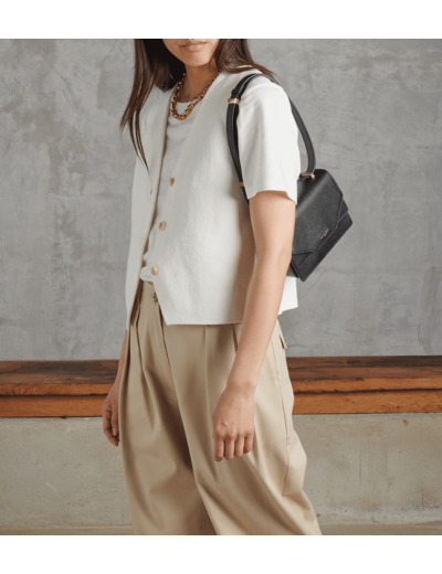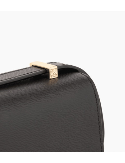 Mini sac bandoulière bimatière avec fermoir gravé signature et marquage Le Tanneur. Porté croisé grâce à sa bandoulière ajustable.