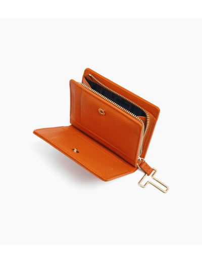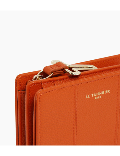 Petit portefeuille avec fermeture pression, marquage Le Tanneur et poche monnaie zip T signature.