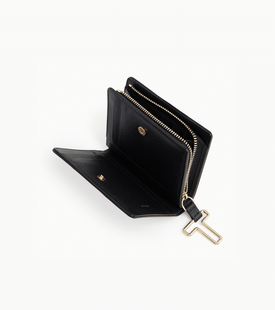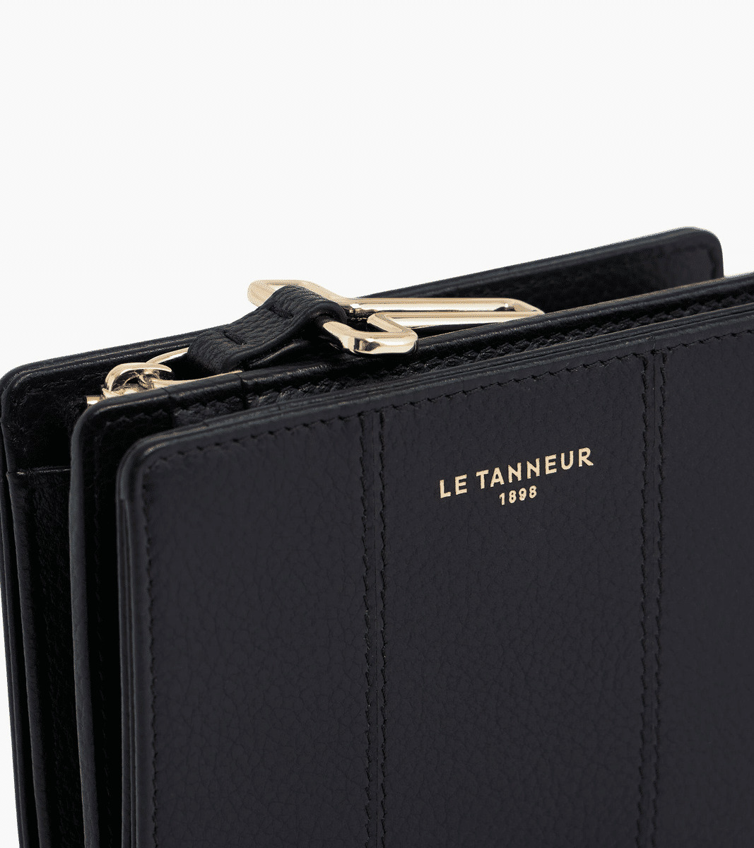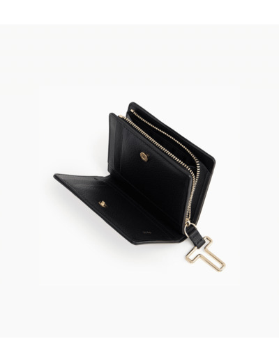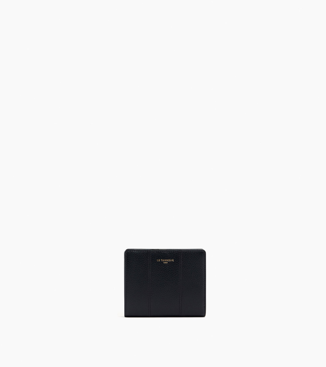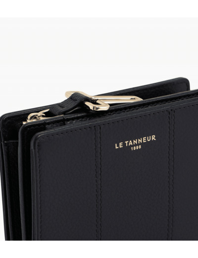 Petit portefeuille avec fermeture pression, marquage Le Tanneur et poche monnaie zip T signature.