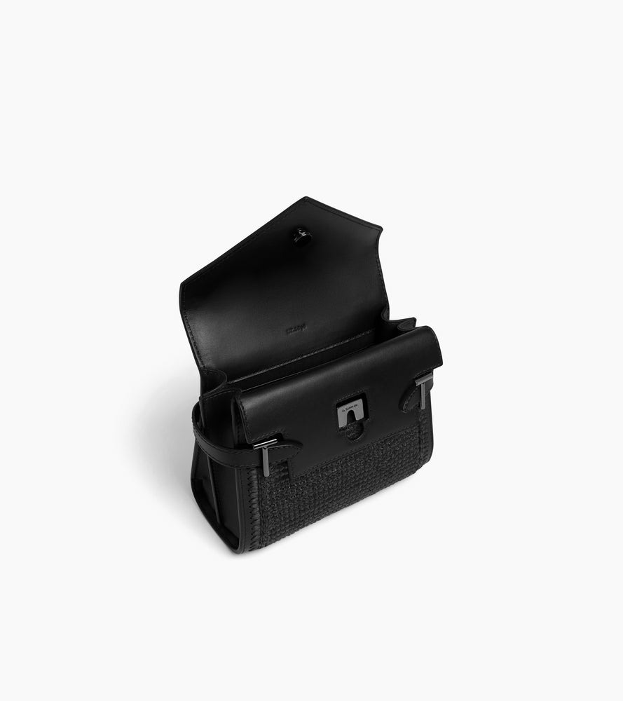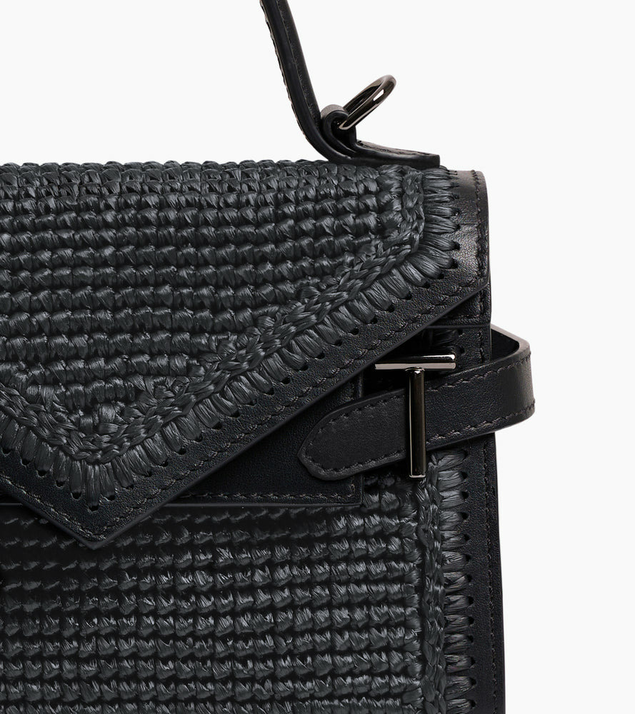 Petit sac à main avec double rabat, bijouterie T signature et marquage Le Tanneur. Porté main, épaule ou croisé grâce à sa bandoulière ajustable et amovible.
