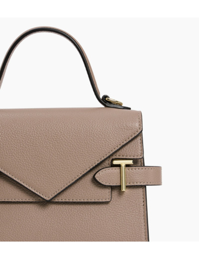 Petit sac à main avec double rabat, bijouterie T signature et marquage Le Tanneur. Porté main, épaule ou croisé grâce à sa bandoulière ajustable et amovible.