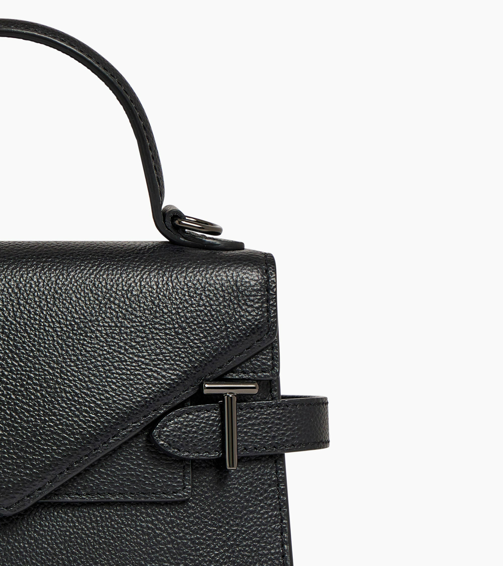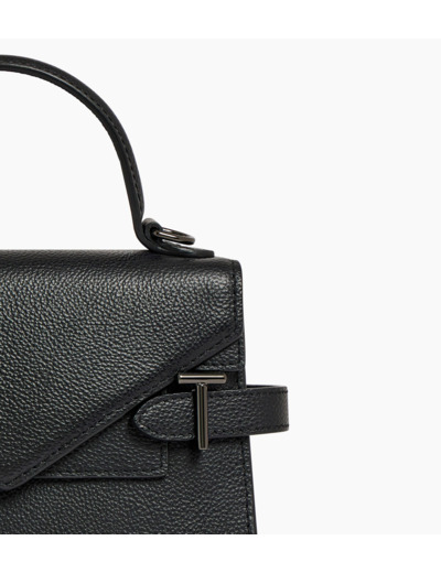 Petit sac à main avec double rabat, bijouterie T signature et marquage Le Tanneur. Porté main, épaule ou croisé grâce à sa bandoulière ajustable et amovible.