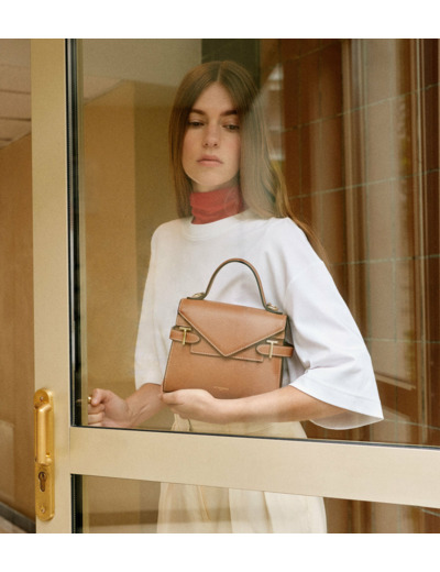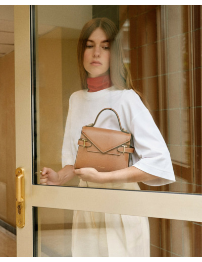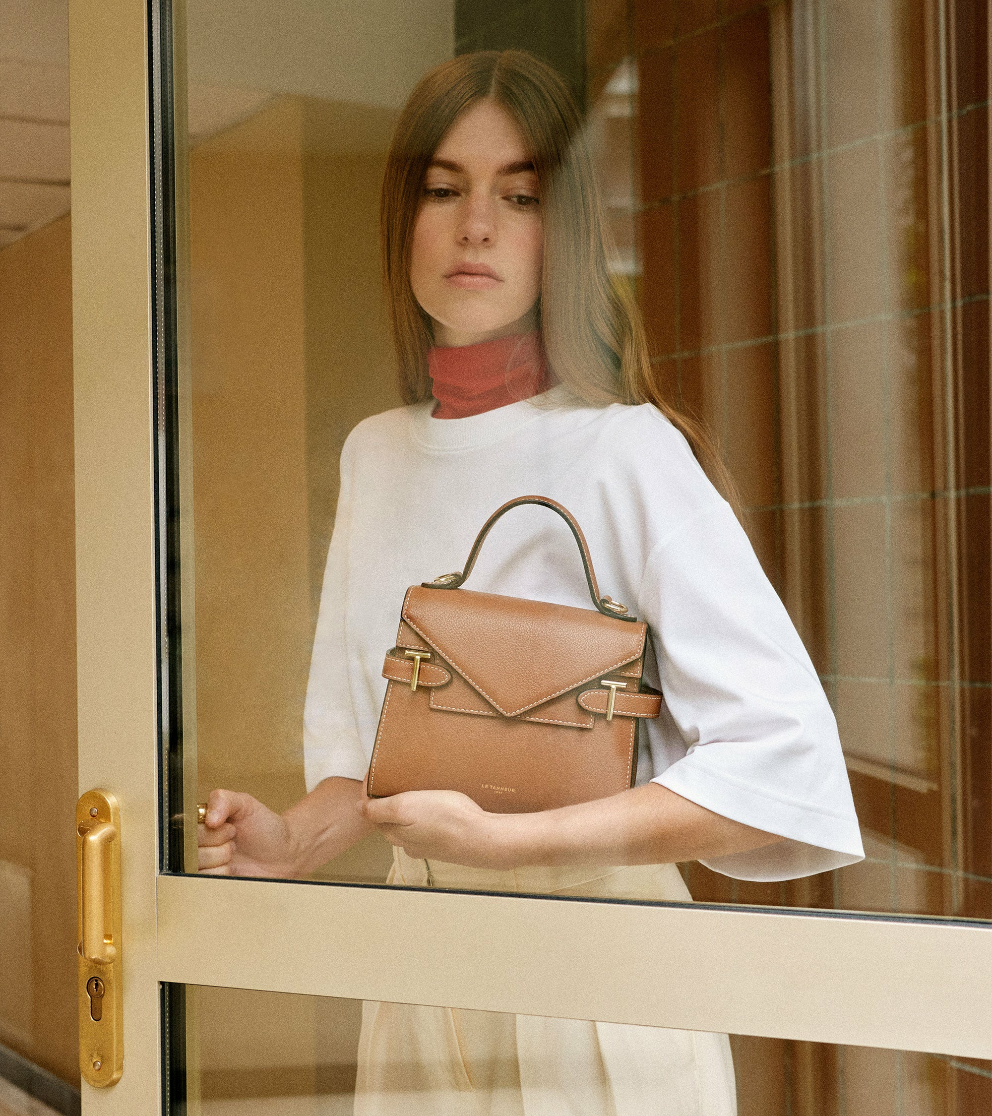 Petit sac à main avec double rabat, bijouterie T signature et marquage Le Tanneur. Porté main, épaule ou croisé grâce à sa bandoulière ajustable et amovible.