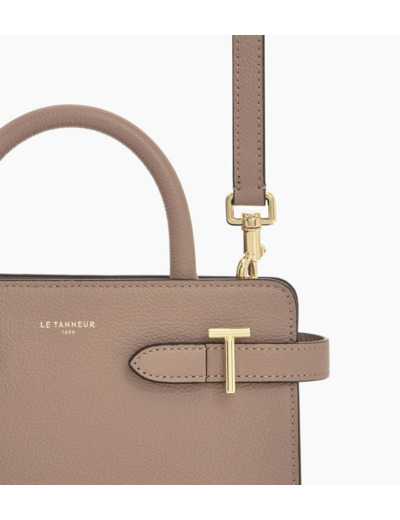 Petit sac à main avec poignées toron et trois compartiments dont un zippé. Pièces T métalliques signature de la ligne. Charms embossé Le Tanneur amovible. Porté main, épaule ou croisé grâce à sa bandoulière ajustable et amovible.