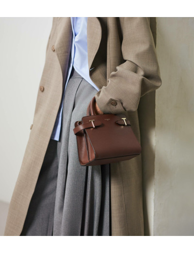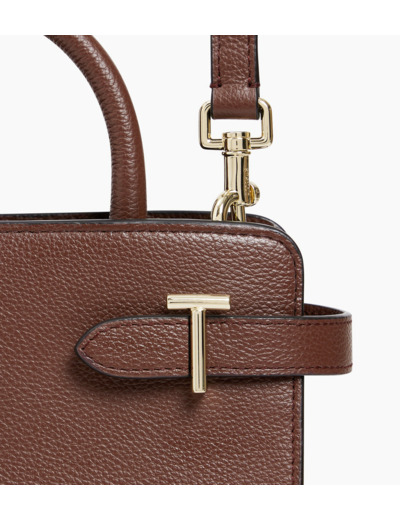 Petit sac à main avec poignées toron et trois compartiments dont un zippé. Pièces T métalliques signature de la ligne. Charms embossé Le Tanneur amovible. Porté main, épaule ou croisé grâce à sa bandoulière ajustable et amovible.