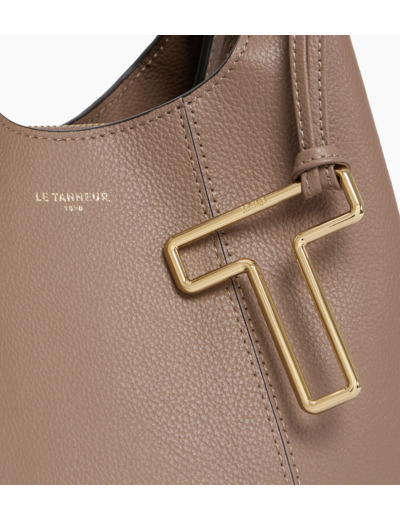 Ce petit sac à main souple, en cuir lisse et aux lignes sans découpe, arbore un charms T finition doré clair signature de la Maison. Il se porte à la main, à l'épaule ou croisé avec sa bandoulière amovible.