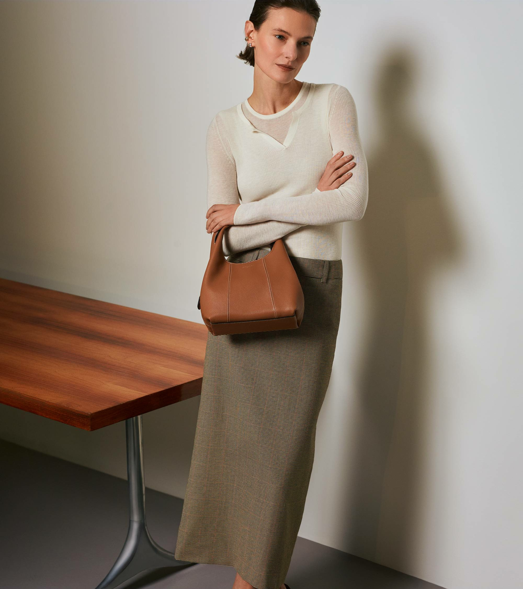 Ce petit sac à main souple, en cuir grainé et aux lignes sans découpe. Il se porte à la main, à l'épaule ou croisé avec sa bandoulière amovible.